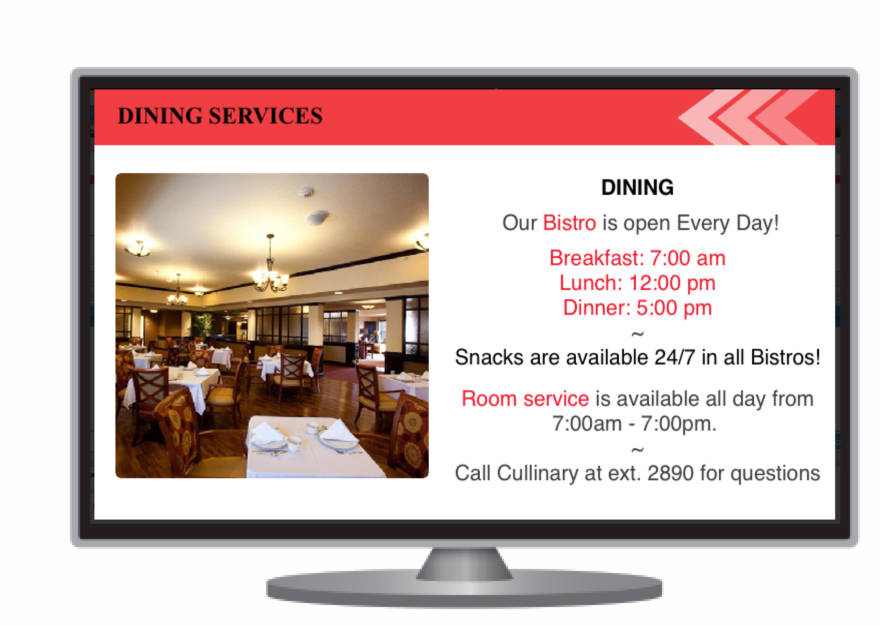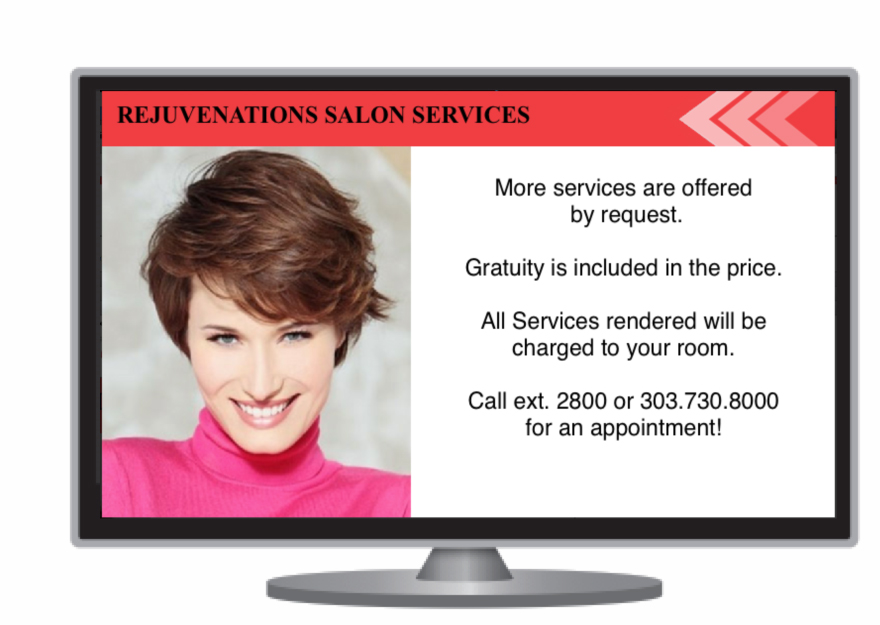 Salon services, a must for many women, were highlighted as part of this digital signage Guest Services experience.
