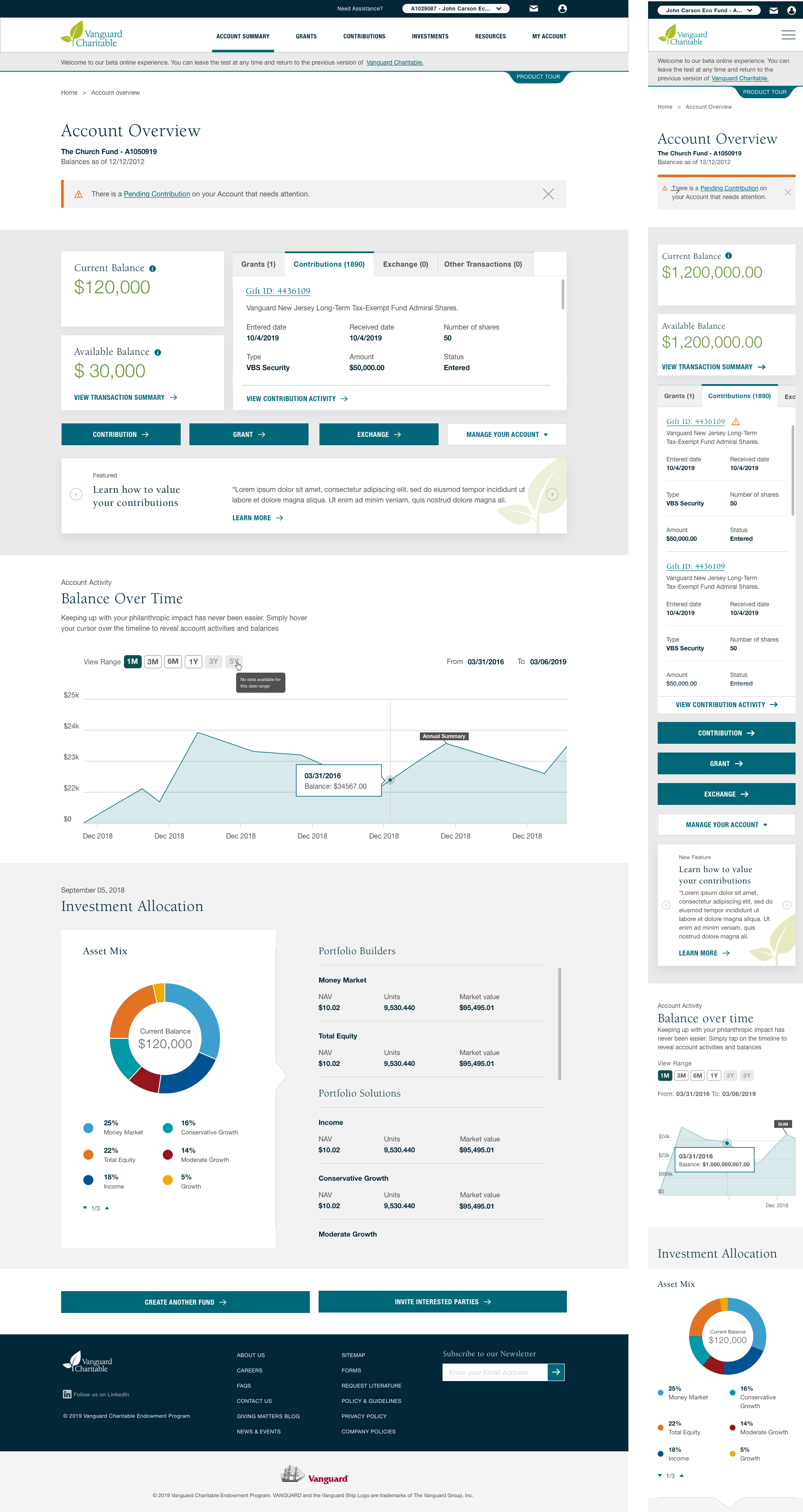 This prototype was a result from our research study and demonstrated to product owners and VC’s leadership a new method in processing outside securities used for charitable donations that increased user satisfaction and eliminated 10% of back office processing.