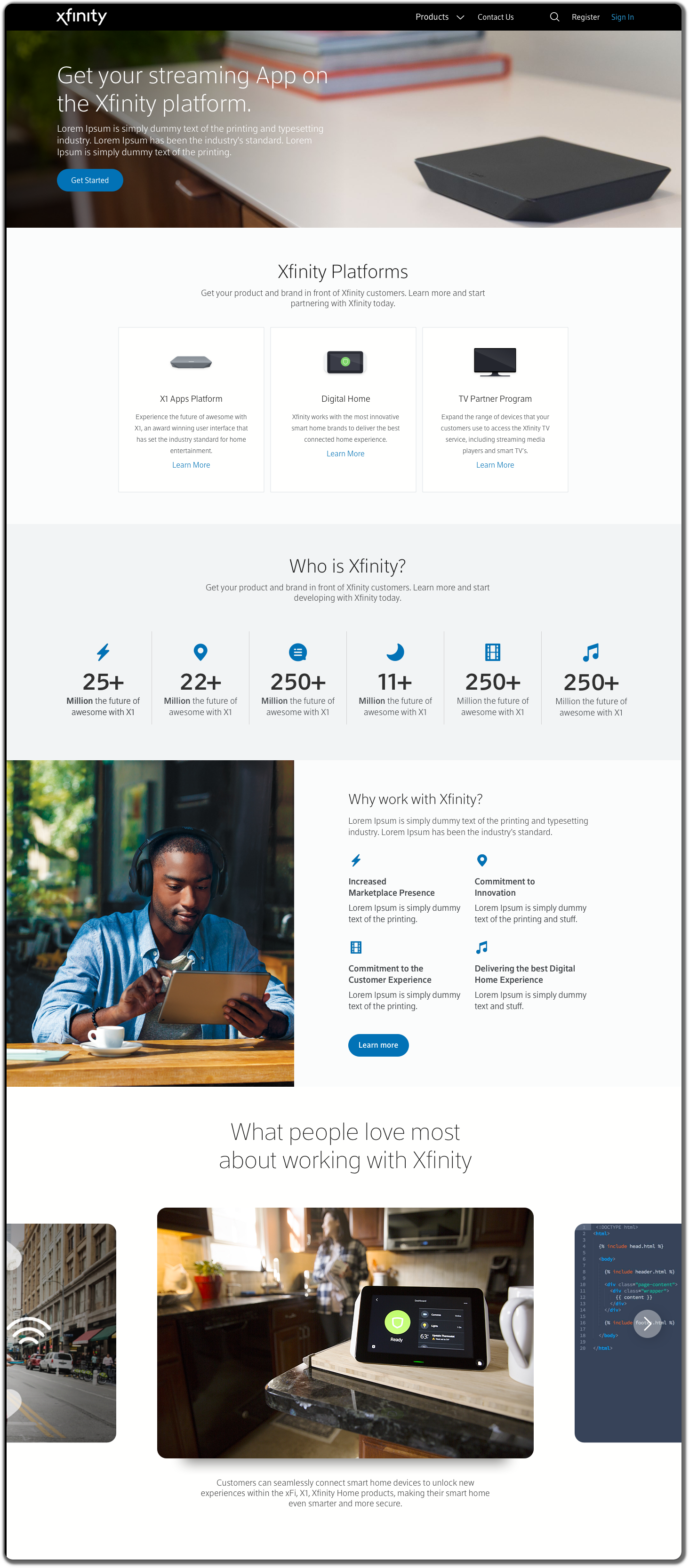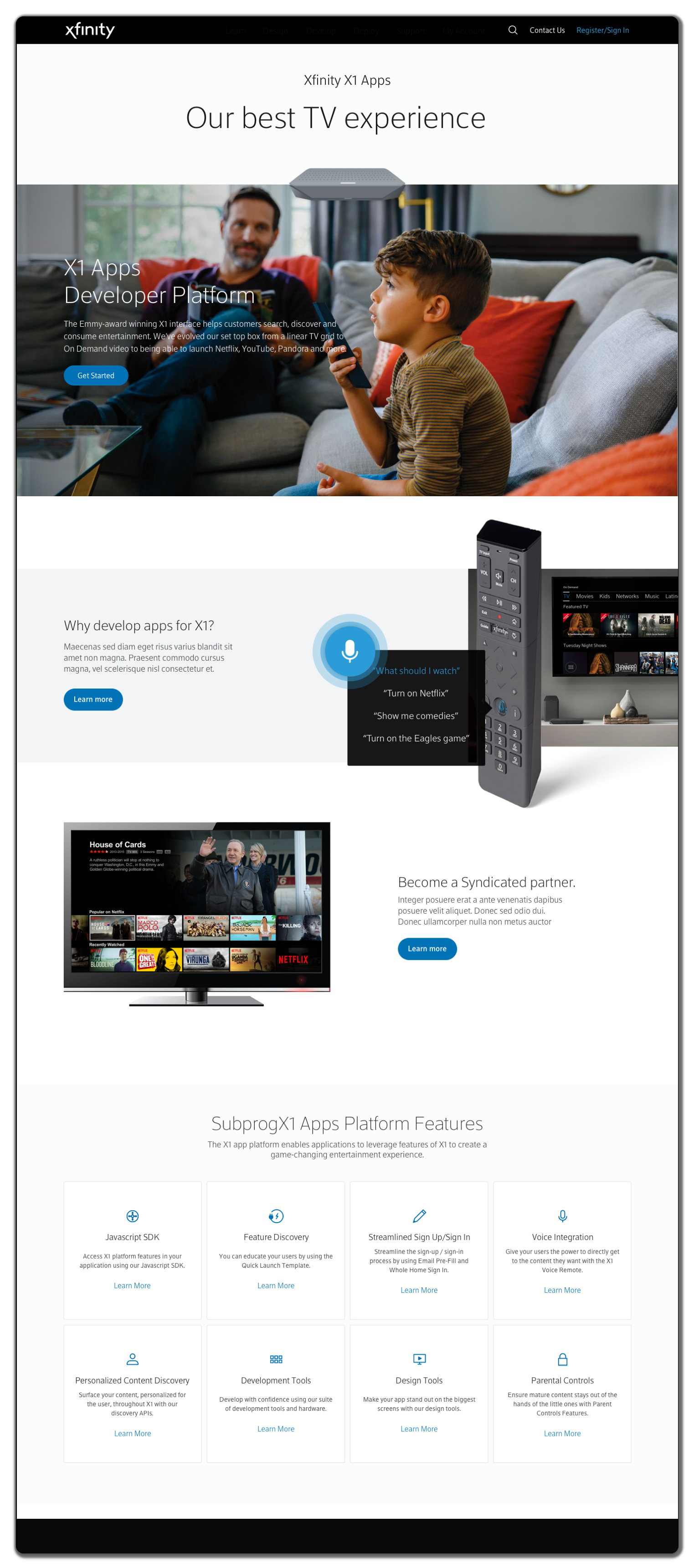 As the Lead Product Design, I was responsible for designing the best user experience for X1 Application developers, Smart Home Device business engineers and Comcast TV business partners. From user research studies, journey maps, wireframes to the final high fidelity designs shown below, I am personally proud that this site is now LIVE! Click on any of the designs below to view the actual screens and flows.